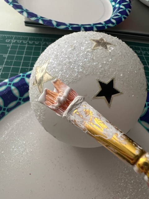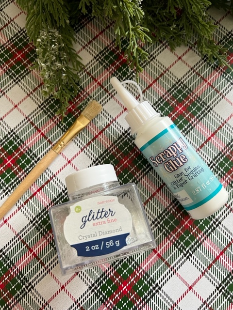 Step 1: Squeeze some glue onto a paper plate and use your paint brush to apply it to your ornament.